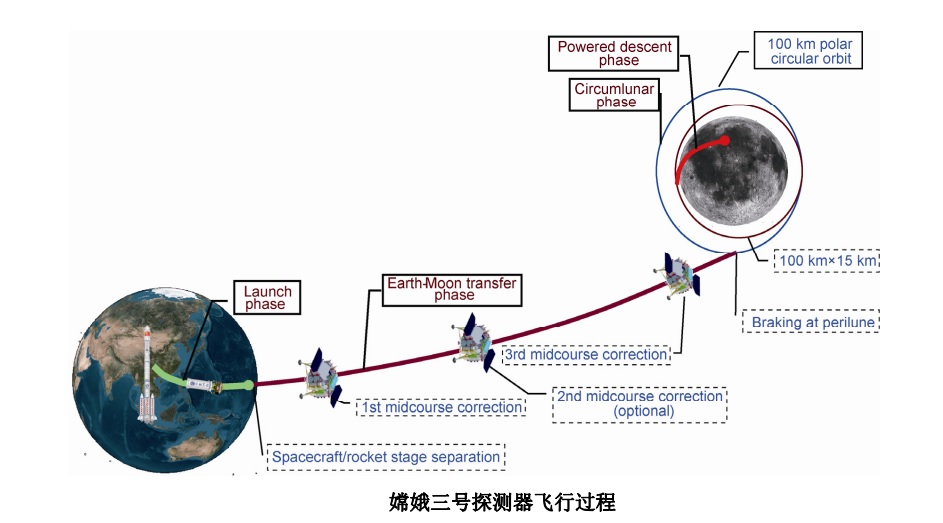 嫦娥三号探测器的科学探测项目主要包括月表形貌与地质构造调查、月表物质成分和资源勘察、日 -地-月空间环境探测与月基天文观测。嫦娥三号探测器经过地月转移段、环月段和动力下降段的飞行, 在月表选定的区域实施软着陆, 着陆 器开展就位探测, 巡视器开展巡视勘察, 并把探测数据传回地面。