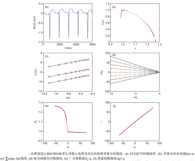 采用多重分形理论, 研究了大量样本同步十二导联心电图信号的奇异谱面积, 经方差分析检验, 该参数对所研究人群各导联均统计可分. 结果显 示, 健康年轻人十二导联ECG信号奇异谱面积的算术均值最大、离散度最小, 而心梗患者十二导联ECG信号奇异谱面积算术均值最小、离散度最大, 其他人群如心肌缺血患者、健康老年人这两个值均处于中等大小水平