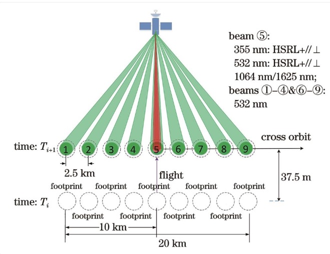 View All针对全球云、气溶胶光学性质的量化及其对气象、气候、地球环境的影响,提出一种星载新一代多波束测云激光雷 达(M3CL)探测方案。该方案采用三体制、四波长、九波束的推扫测量方式形成地面九波束 20 km 推扫幅宽,即单激光器产生 355 nm、532 nm、1064 nm 和 1625 nm 4 个波长的激光,其中 532 nm 包含 9 个波束,波束间隔为 3.05 mrad;光电接收核心波束 355 nm/532 nm 双波长采用高光谱探测和偏振探测,1064 nm、1625 nm 为回波能量探测,另加边缘 8 波束 532 nm能量探测.